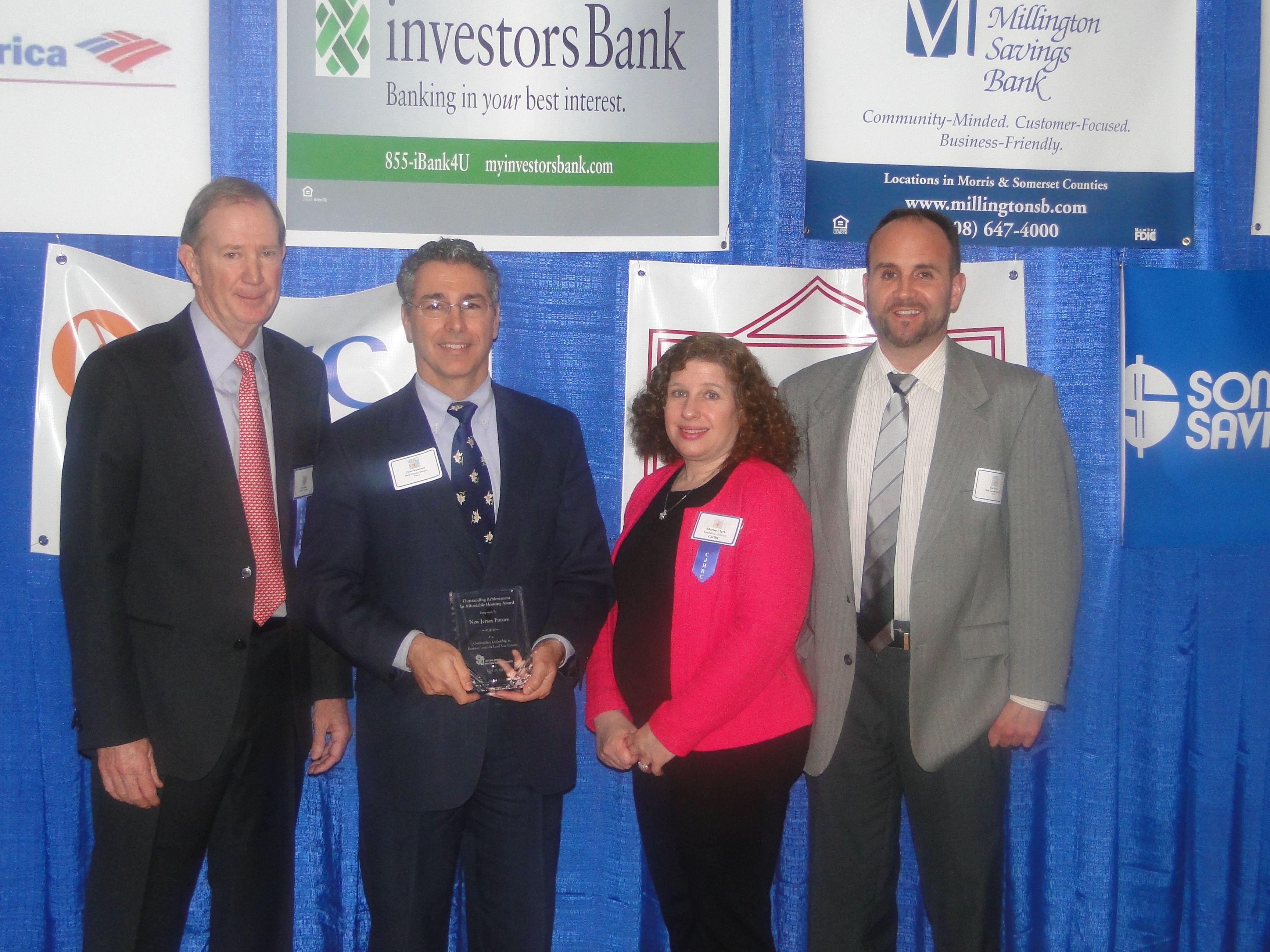 On April 18 New Jersey Future was presented with the Central Jersey Housing Resource Center Outstanding Achievements in Affordable Housing Award, for “outstanding leadership in housing issues and land-use policies.” Each year, CJHRC selects outstanding elected officials — local, state, and federal — as well as public servants, volunteers, banks, developers, attorneys and housing experts for exemplary service to the affordable housing sector. This year, in addition to recognizing the organization’s long-time achievements, CJHRC singled out New Jersey Future Research Director Tim Evans for his work on the 2012 report Targeting Transit: Assessing Development Opportunities Around New Jersey’s Transit Stations, and the opportunities it highlighted to create much-needed affordable housing near transit. We’re honored to be so honored!