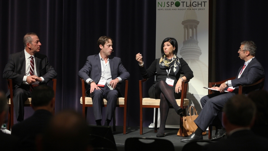 Left to right: Paul Silverman of SILVERMAN; Ron Beit of RBH Group; Christiana Foglio-Palmer of Community Investment Strategies, and moderator Peter Kasabach of New Jersey Future. Photo by Amanda Brown, NJ Spotlight.