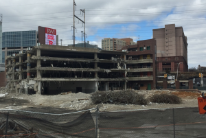 The Ferren Parking Deck in New Brunswick during its recent demolition. Photo courtesy of Jim Zullo, Timothy Haahs & Associates.
