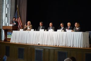 “Dealing with Sandy was a nightmare for us,” said John Spodofora, mayor of Stafford Township and one of 11 panelists at the event. More than 4,000 homes in Stafford were severely damaged by the 2012 hurricane, totaling $200 million in property damage. The town lost millions in tax revenue. Spodofora remembered that many residents came into town hall crying, unsure where they were going to live. Five years later, only 65 percent of Stafford Township is rebuilt. The most difficult areas to rehabilitate make up the 35 percent that have still not recovered.