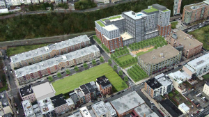 The Seventh and Jackson redevelopment project in Hoboken was used as a case study to show the benefits of including GI in a private development project. In addition to a 14-story residential and commercial building, the project includes the construction of a new gymnasium that will be donated to the city, as well as the creation of approximately two acres of public open space that includes an underground stormwater detention system that will hold a volume of stormwater over the entire project site roughly equal to that of a 10-year storm. The project also included the extensive remediation of multiple properties that had been contaminated and had gone unremediated for years.