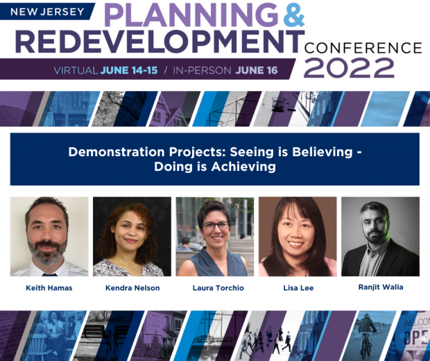 “Streets make-up up to 80% of every communities’ public space. What if we start to think of streets as places for people, as well as places to move and store cars?” Moderator Laura Torchio of NV5 asked viewers to consider streets as places during the 2022 NJ Planning and Redevelopment Conference. For large design projects that alter current transportation design and systems, oftentimes the largest obstacle is public resistance to change in current habits. The session, Demonstration Projects: Seeing is Believing – Doing is Achieving, explored how demonstration projects in three New Jersey municipalities can lead to long-term design solutions that reduce vehicle miles traveled, increase transportation options, promote economic growth through infrastructure investments, and create better public spaces for all users.