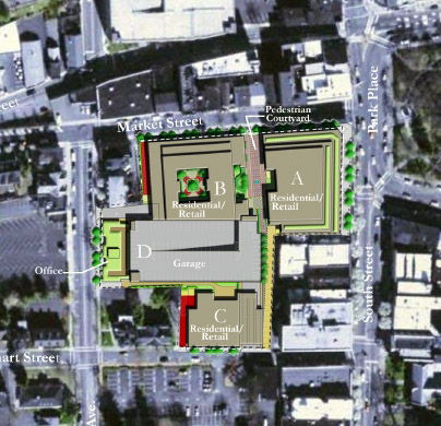 The planned redevelopment of a former department store and parking facility in downtown Morristown provides retail, residential, and office space as part of a center-based plan that promises to serve as a model for other towns.