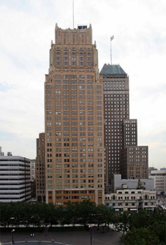 Designed by Frank Grad, a prominent Newark architect, the Raymond Commerce Building opened in 1930 as the Lefcourt Newark Building. The 35-story building and its neighbor at 744 Broad St., the National Newark Bank building, were considered Newark’s “Art Deco Twins” and remained the tallest buildings in New Jersey until the late 1980s. The buildings fell into disrepair during that decade and remained empty for 20 years—constant reminders of the city’s economic decline. The abandonment took a toll on the Raymond Commerce Building and caused severe damage both on the inside and outside; entire floor plates had rotted through, pieces of the façade were falling off and there were contamination issues.