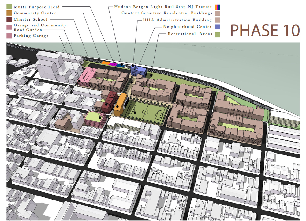 Site plan showing new vision for low-income housing and neighborhood redevelopment envisioned by the Hoboken Housing Authority.