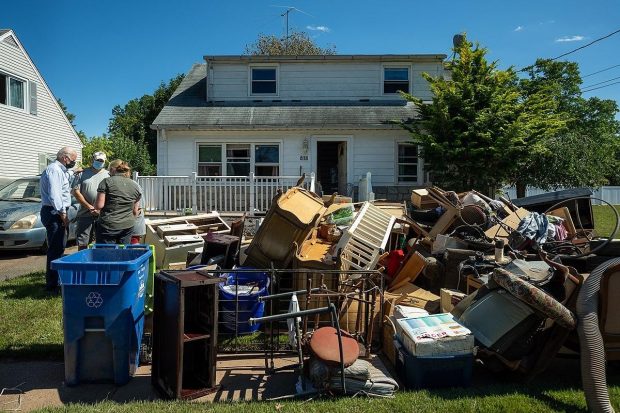 President Joe Biden tours a neighborhood in Manville Borough and talks with residents affected by the flooding caused by Hurricane Ida